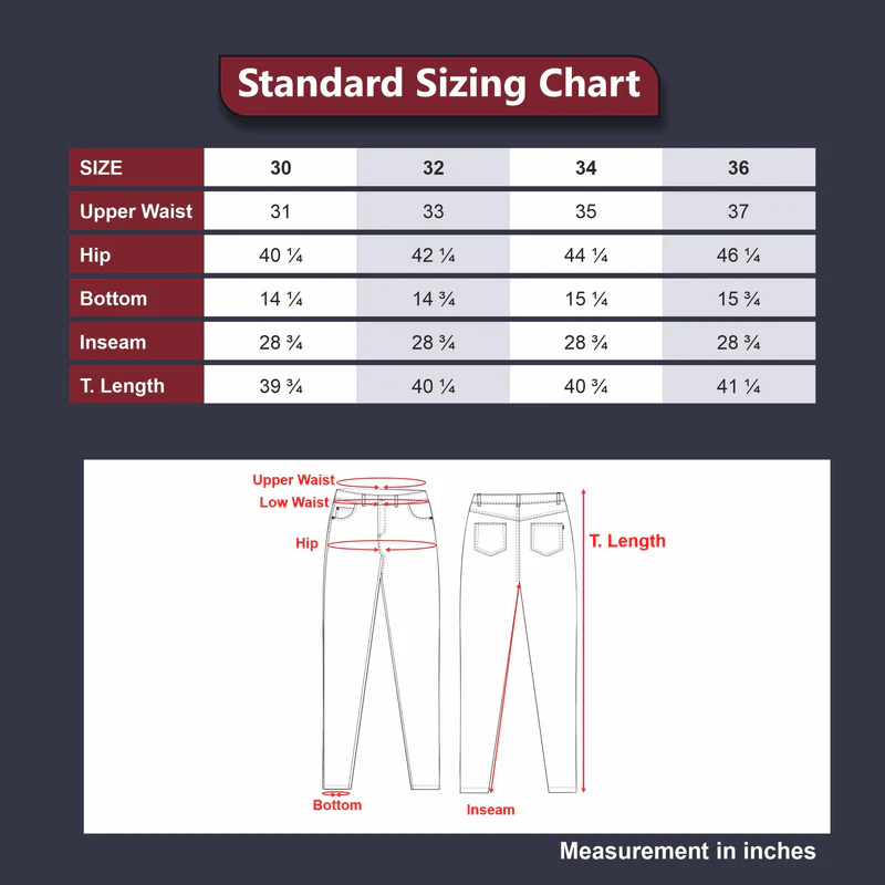 - SPECIFICATIONS. Zipper fly with button closure, signature label at back waistband, leg opening: 15.75″.